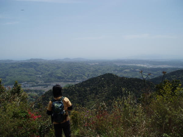 1kmほど、枯葉が積み重なったやたら広い登山道。最初はややキツメの登りだったけれどすぐになだらかな道に。日差しはなかなか強いけれど、適度に風もあり、木も多いのでとても快適に歩くことができた。 ミツバツツジがあちこちに咲いていたけれど、青い空と緑の木々に囲まれて、紅一点ならぬピンク一点という感じで、木漏れ日を受けさらにピンク色が輝いて可愛らしく感じられた。派手なピンク色なのに、いやみがなくて◎。