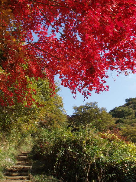で、のんびり歩いたり、写真を撮ったりしながら10:20に市が原に到着。 意外と人は少なく、トイレ休憩をした後、静かな道を摩耶山に向って進んでいった。市が原から摩耶山までは稲妻坂・天狗道という六甲全山縦走でも難所の1つに数えられている場所が続く。単純標高差500m弱・4kmちょっとの道のりなのだが、ここに辿り着く以前のアップダウンがジワリと効き、疲労感を覚えるところなのである。
